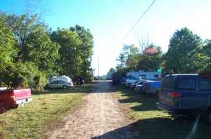 The parking lot near Treetops Stage. In the back on the right notice Dale's trailer, used by many people for many purposes. [ 528x350 (24 kB) ] |