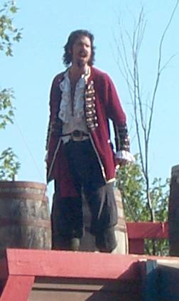 The pirate captain (Jeff) sneers in defiance of the musketeers' threats. [ 252x423 (16 kB) ] |