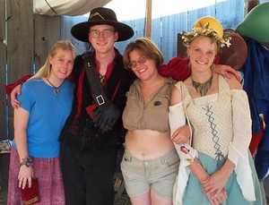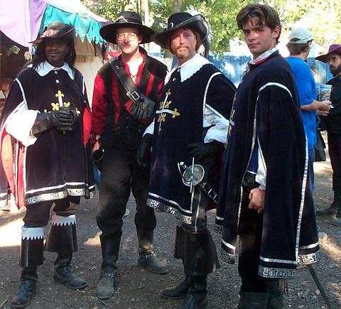 I pose with musketeers Aramis (Cal), Athos (Doug), and D'Artagnan (Ryan). [ 480x435 (48 kB) ] |
